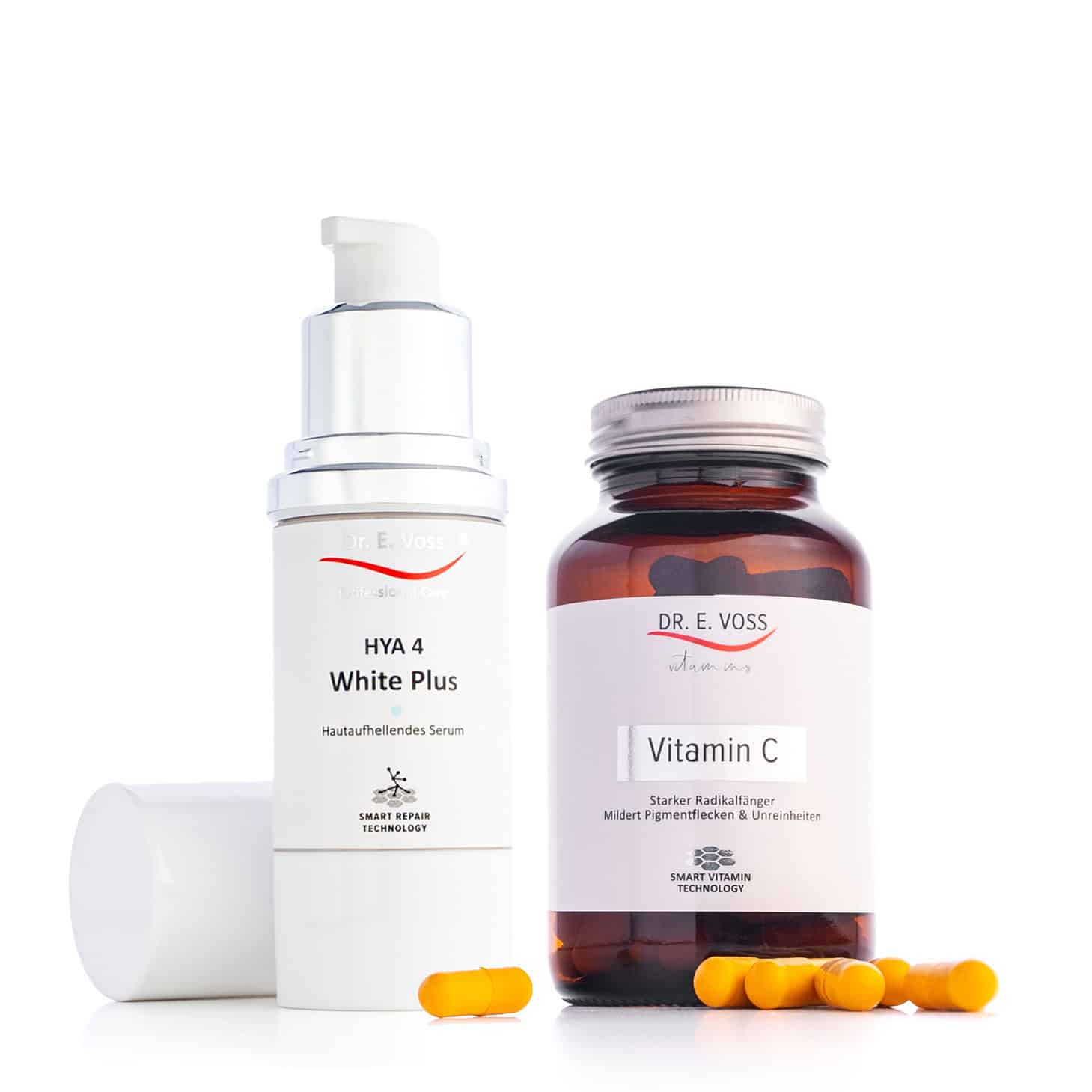 Set includes: 90 Vitamin C Capsules (3-month supply), 30ml HYA 4 White Plus Serum